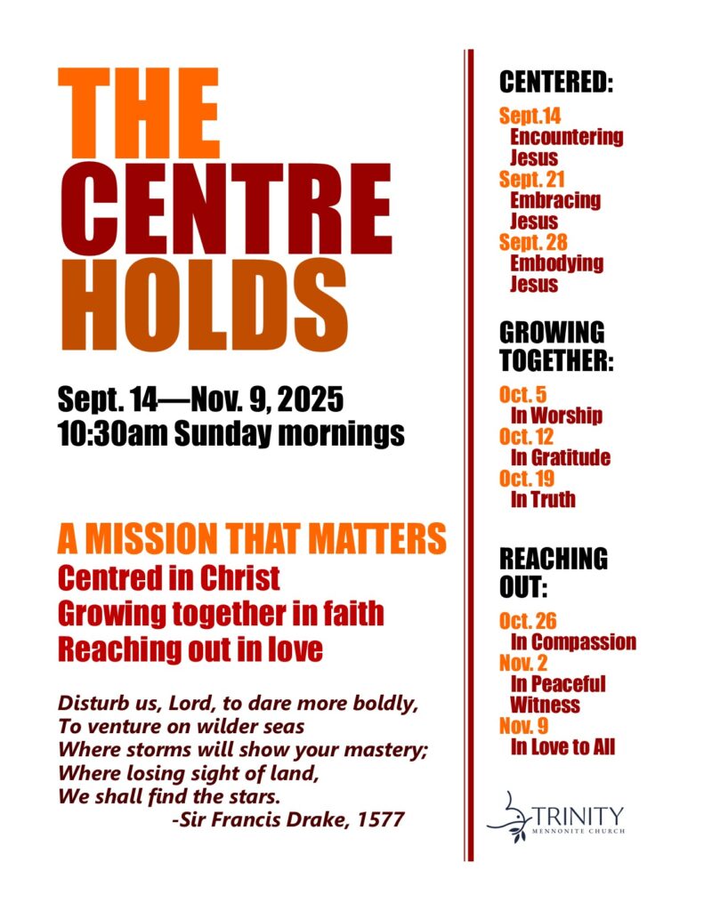 Please join us for our fall sermon series starting Sept. 14th and stay for a shared meal after the service.